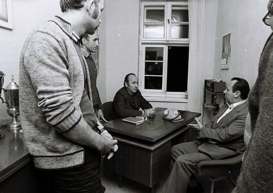 Władza rozmawia ze strajkującymi w zajezdni nr VII Rozmowy prezydium MKS z wojewodą Januszem Owczarkiem w obiektywie Wiesława Dębickiego. Zdjęcia ze zbiorów Ośrodka "Pamięć i Przyszłość". Od lewej: Czesław Stawicki, Zbigniew Kopystyński, Jerzy Piórkowski i Janusz Owczarek ← → 2020-12-03 galerie dolnośląskie